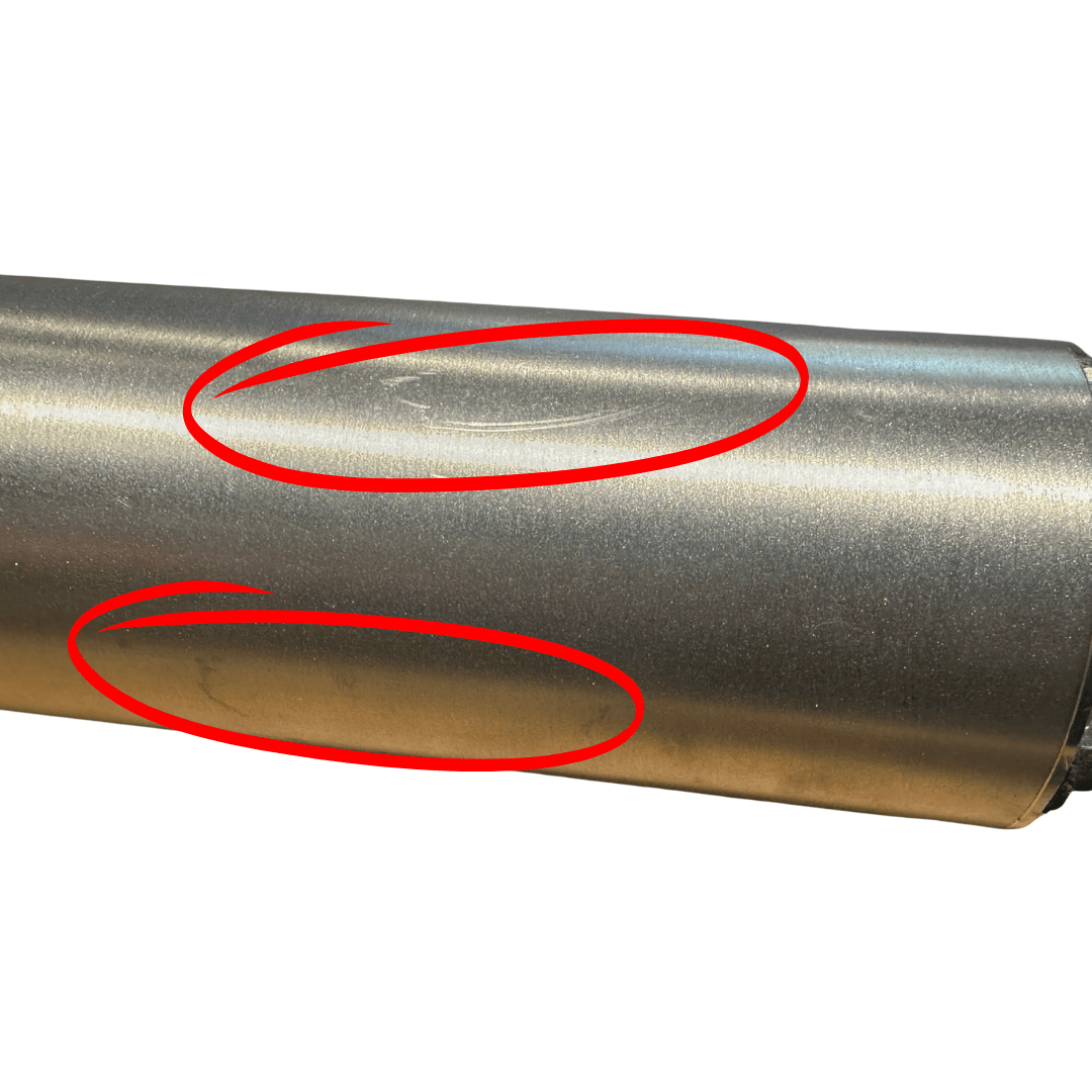 This Yasuni Silencer has not been run on a bike, but does show some blemishes on the outside. I circled the largest and most obvious ones. See photos for reference. ...