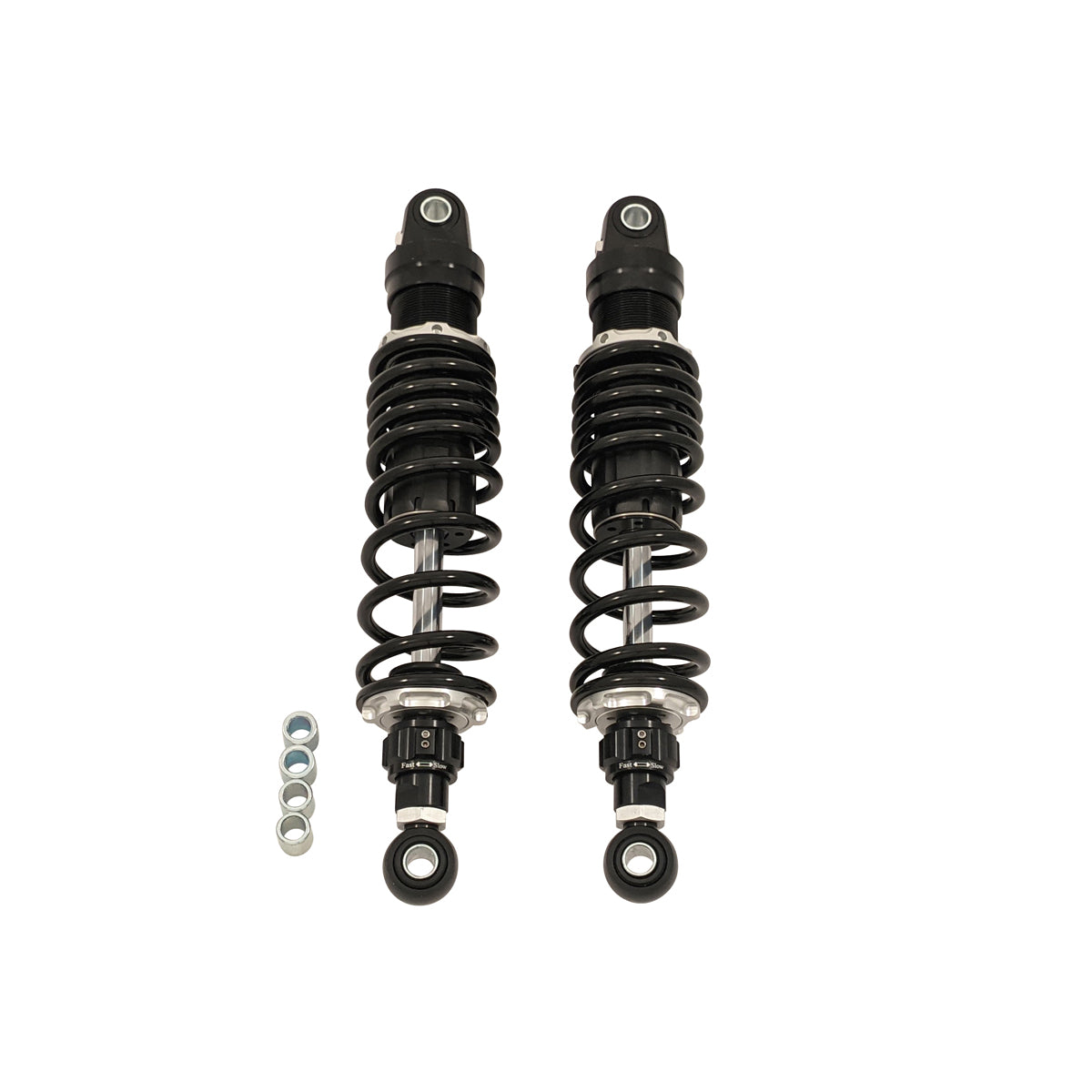 330mm Shock Set for your Honda DAX - features silver body and chrome spring. Stock length is 340mm so these are a little bit lower than OEM Adjustability in preload, and...