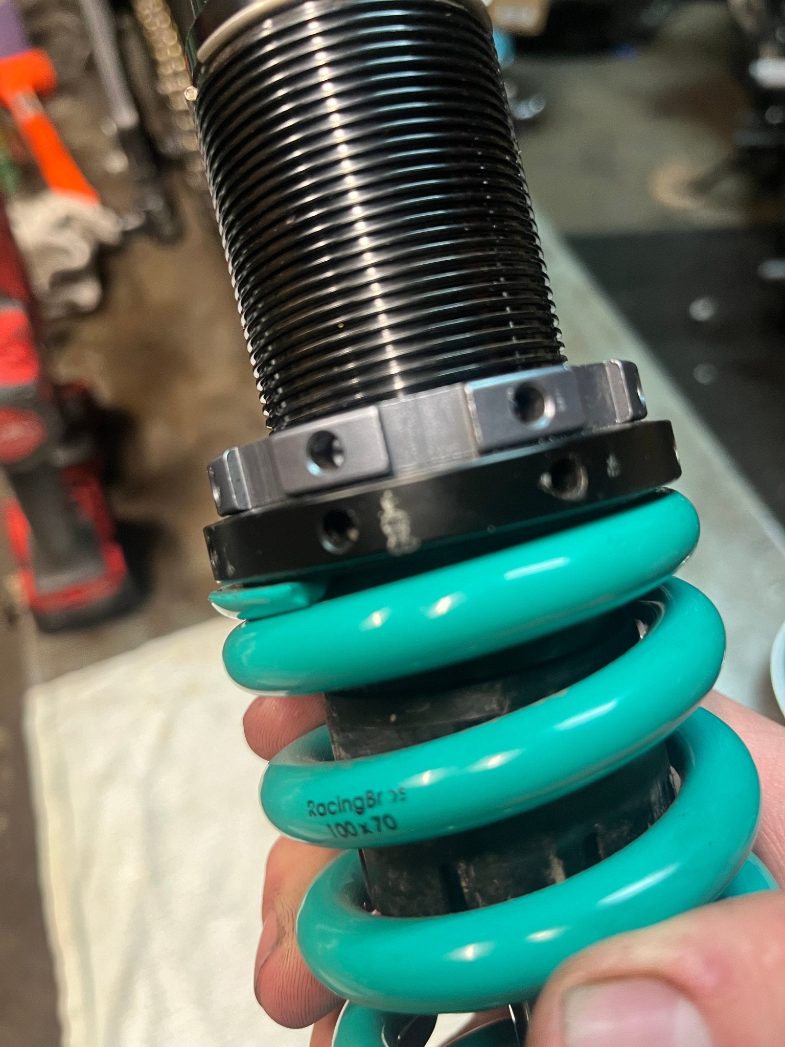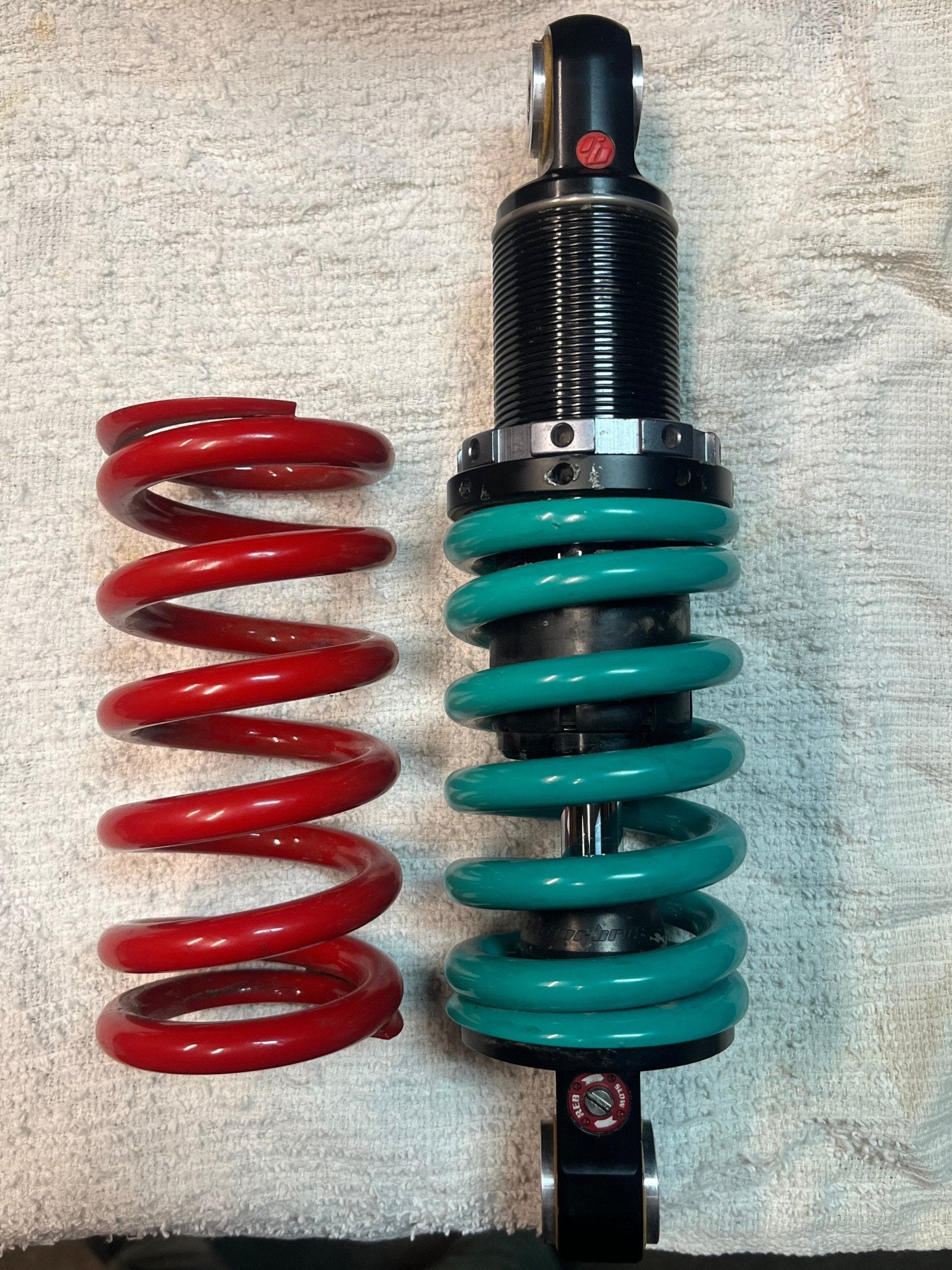 USED but like new Racing Bros Shicane Mono R shock for honda grom Includes Standard (100nm/mm Teal) and Soft (88nm/mm RED) springs for lighter or standard weight riders up to...