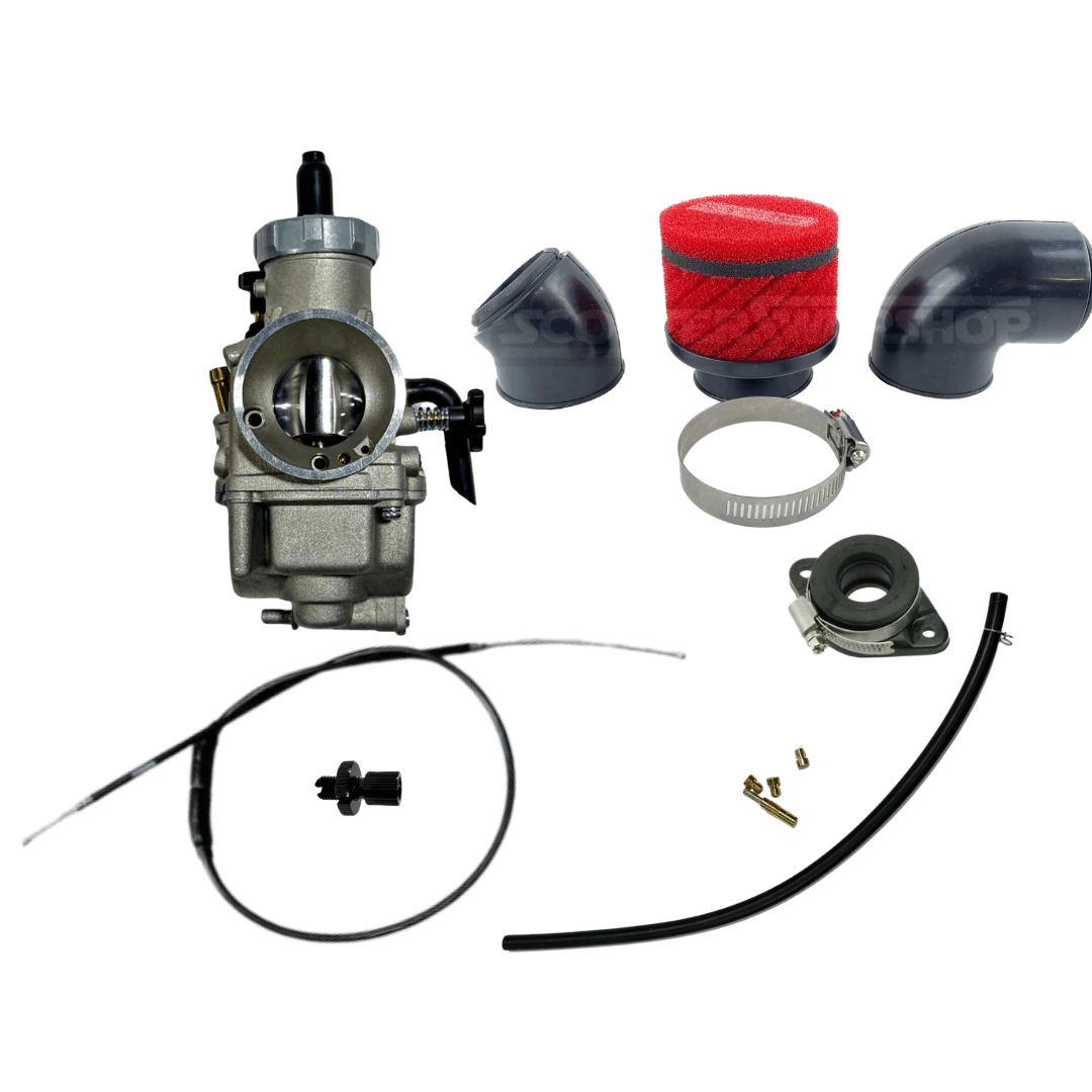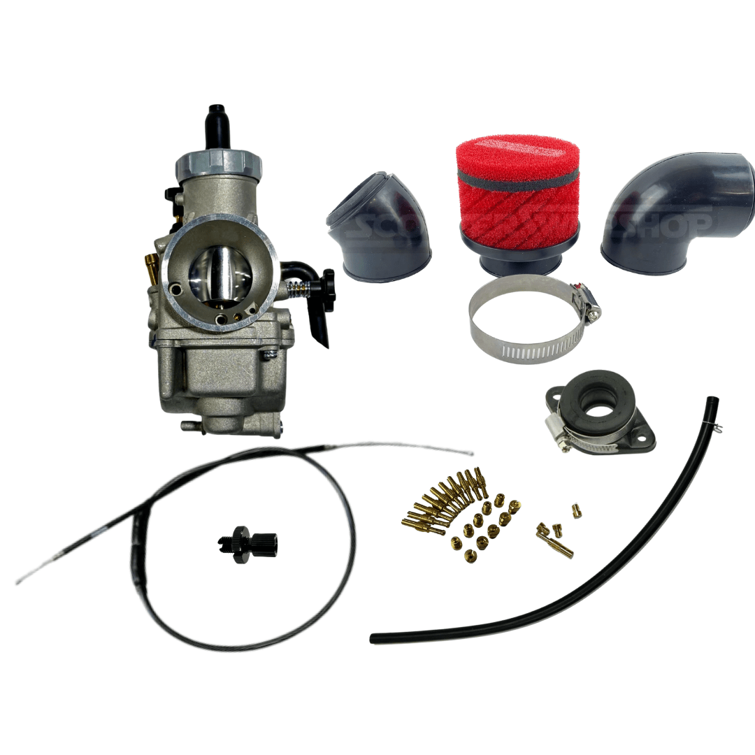 Finally! The long awaited 28mm carb kit for the XR150L! Perfectly pairs with our big bore kit, camshaft, exhaust, and other parts! Includes : Nibbi PE 28mm carburetor Throttle Cable...