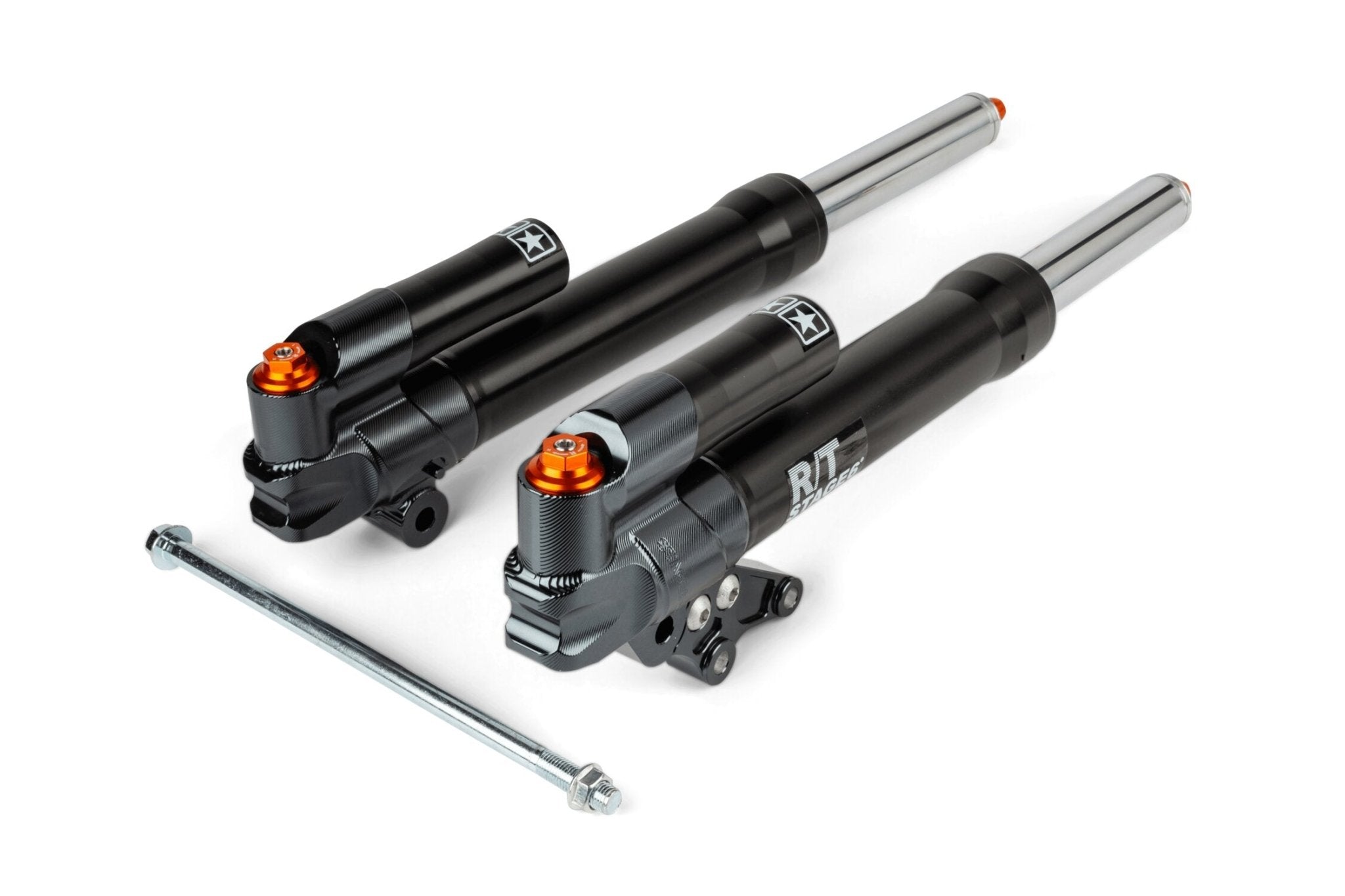 Stage6 R/T racing forks for zuma, and other scooters with 30mm stanchions. Custom spacers may be required depending on the year of your zuma. Compatible with Radial, and brembo (p30)...